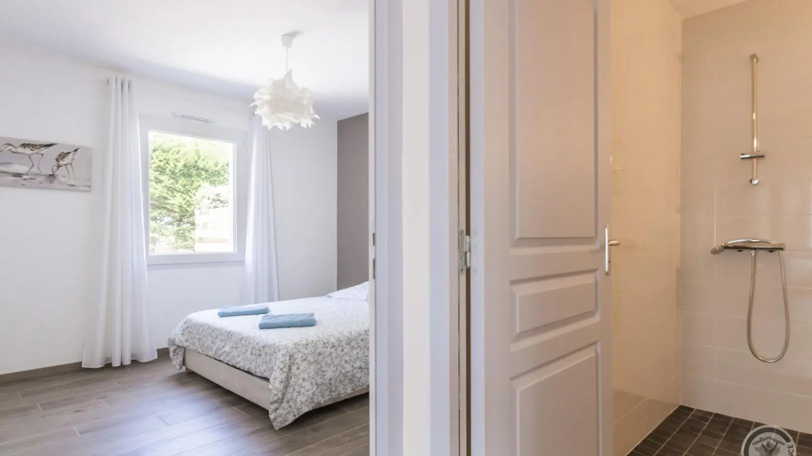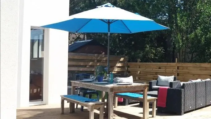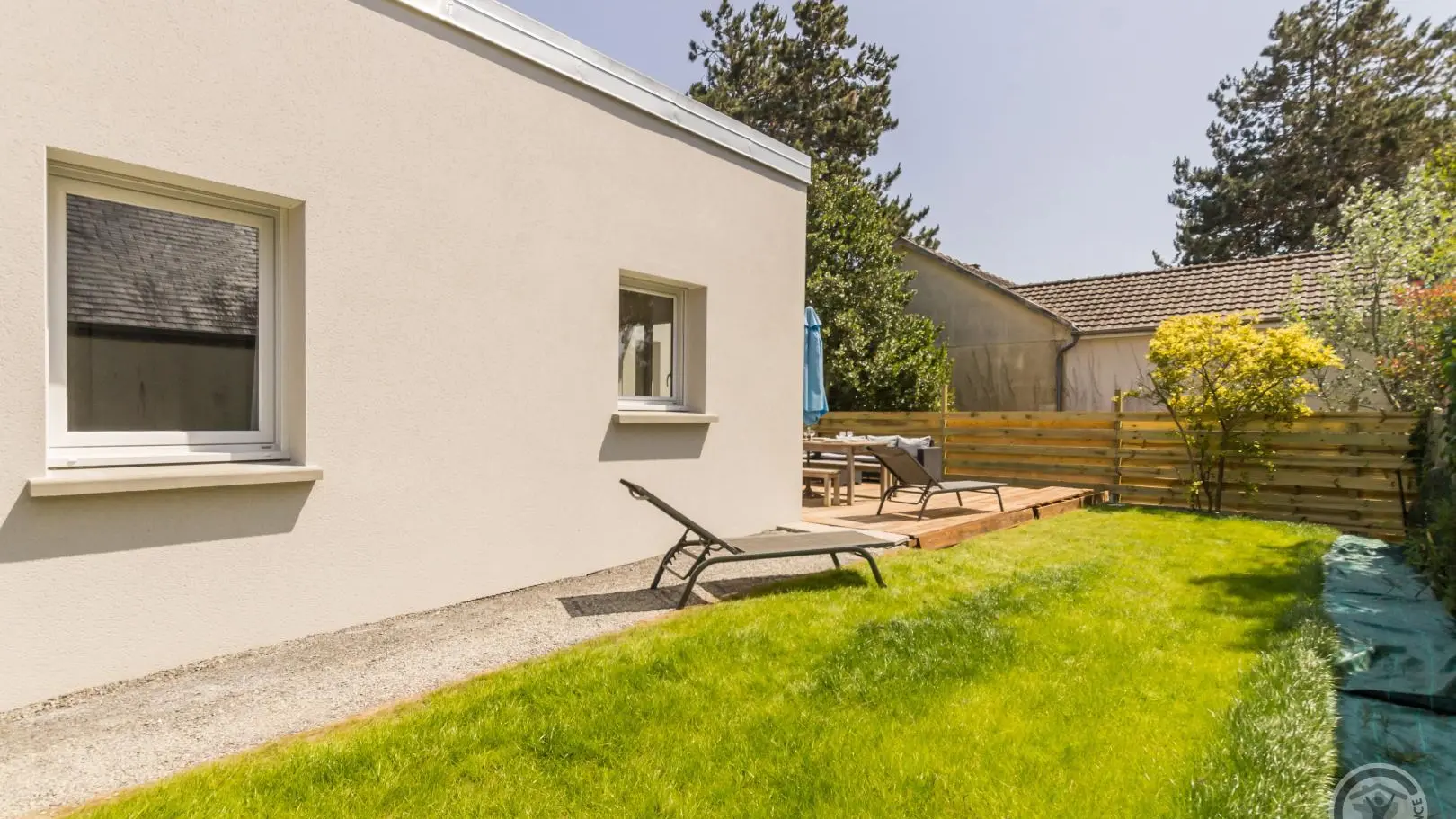 Unabhängiges Haus im Erdgeschoss. Wohnzimmer (TV). Zum Wohnzimmer hin offene Küche (Backofen, Induktionskochplatten, Geschirrspüler, Kühlschrank mit Gefrierfach, Mikrowelle, Kaffeemaschine mit Pads, Waschmaschine). Badezimmer mit WC. Schlafzimmer 1 (1 Bett 160x200) mit direktem Zugang zum Badezimmer. Schlafzimmer 2 ( Bett 140x190). Schlafzimmer 3 (2 Betten 90x190). Die Zimmer 2 und 3 haben Zugang zu einem zweiten Badezimmer mit WC. WIFI Faser. Babyausstattung auf Anfrage. Bettwäsche und Handtücher werden gestellt. Betten bei der Ankunft gemacht. Reinigungsservice als Option. Fußbodenheizung durch PAC Aerothermie. Alle Nebenkosten inbegriffen. Privater geschlossener Garten. Terrasse aus Holz. Gartenmöbel. Liegestühle. Barbecue mit Gas. Parkplatz.