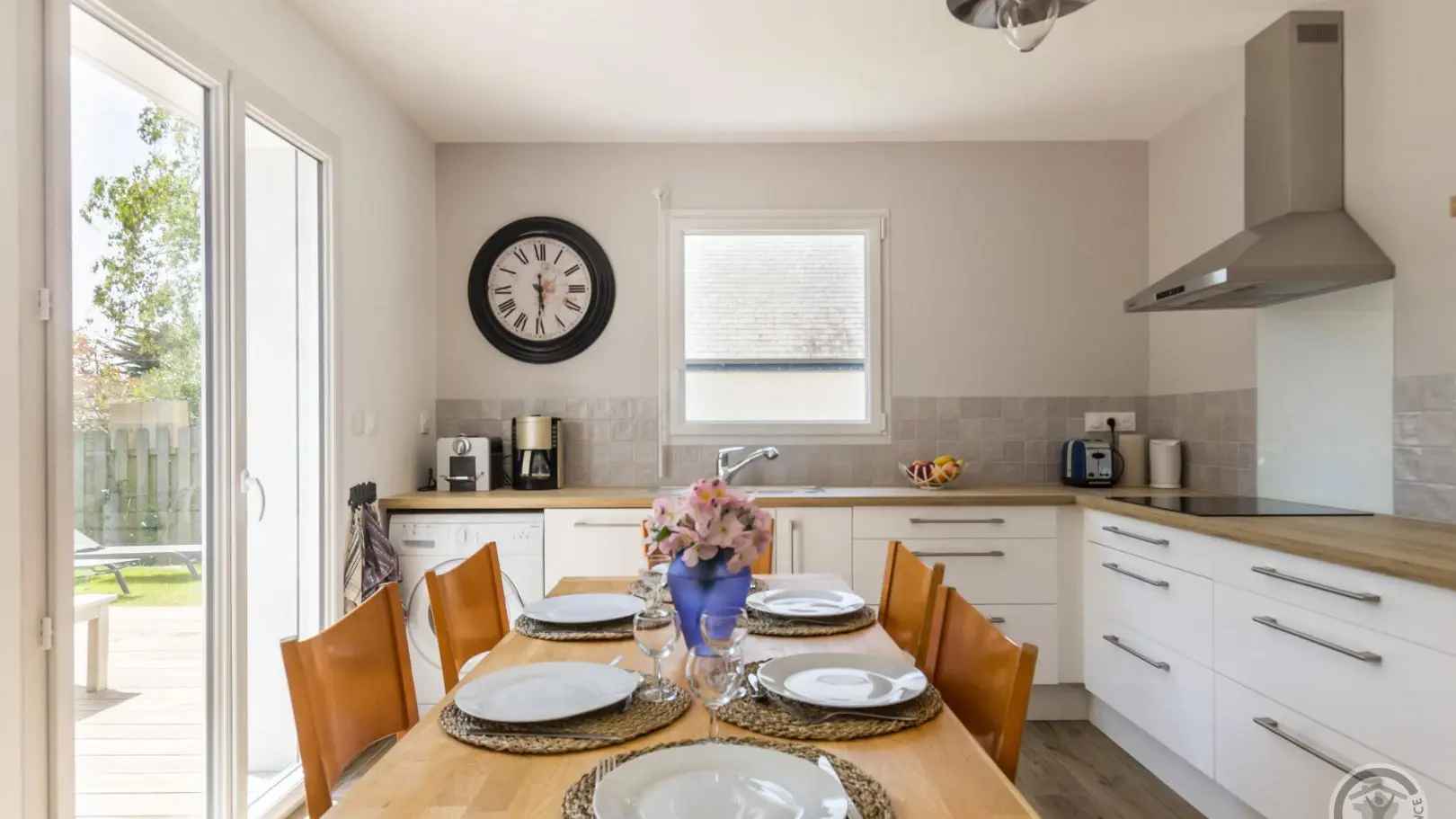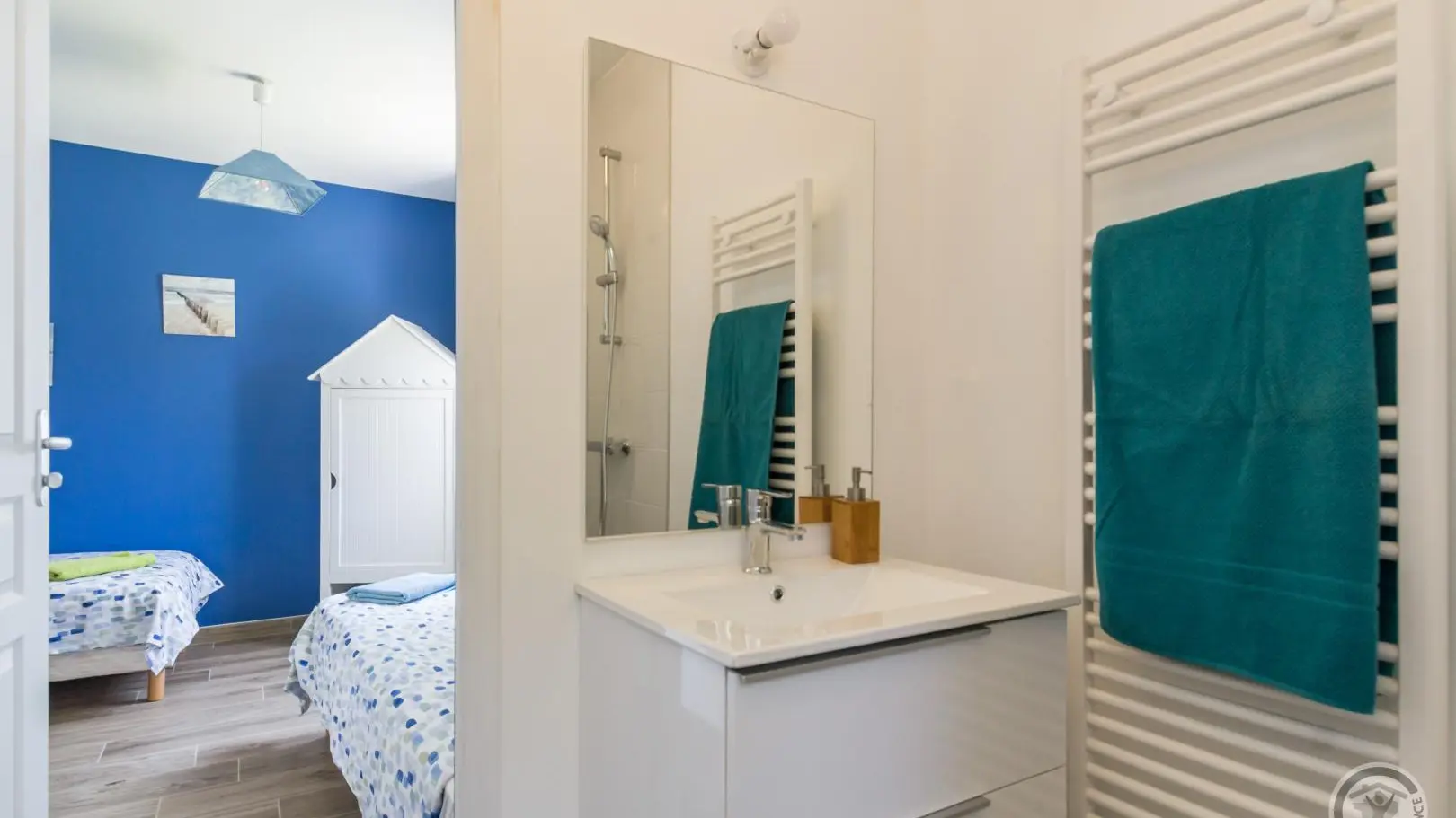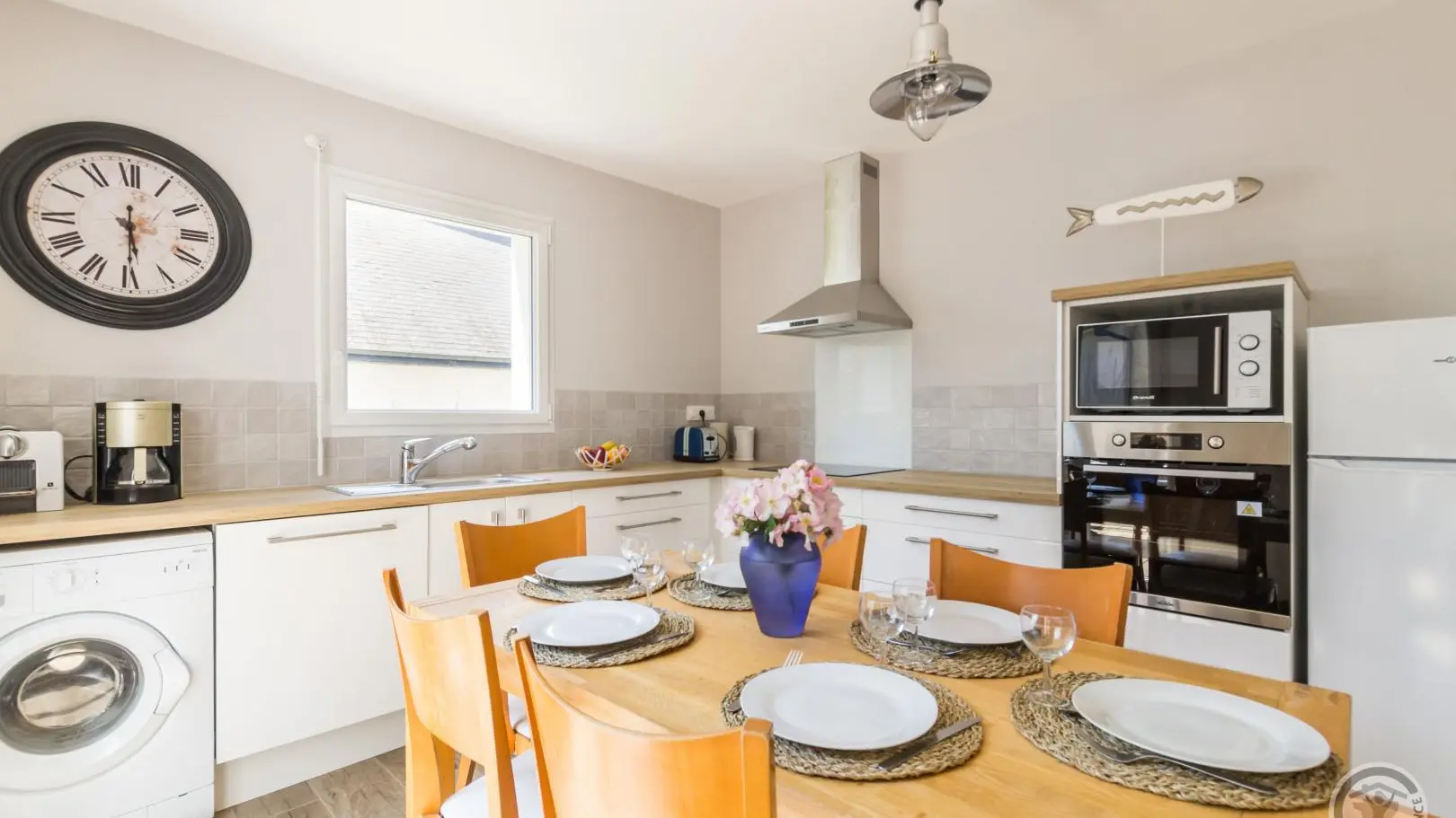 Unabhängiges Haus im Erdgeschoss. Wohnzimmer (TV). Zum Wohnzimmer hin offene Küche (Backofen, Induktionskochplatten, Geschirrspüler, Kühlschrank mit Gefrierfach, Mikrowelle, Kaffeemaschine mit Pads, Waschmaschine). Badezimmer mit WC. Schlafzimmer 1 (1 Bett 160x200) mit direktem Zugang zum Badezimmer. Schlafzimmer 2 ( Bett 140x190). Schlafzimmer 3 (2 Betten 90x190). Die Zimmer 2 und 3 haben Zugang zu einem zweiten Badezimmer mit WC. WIFI Faser. Babyausstattung auf Anfrage. Bettwäsche und Handtücher werden gestellt. Betten bei der Ankunft gemacht. Reinigungsservice als Option. Fußbodenheizung durch PAC Aerothermie. Alle Nebenkosten inbegriffen. Privater geschlossener Garten. Terrasse aus Holz. Gartenmöbel. Liegestühle. Barbecue mit Gas. Parkplatz.