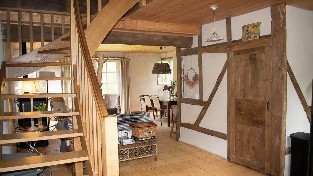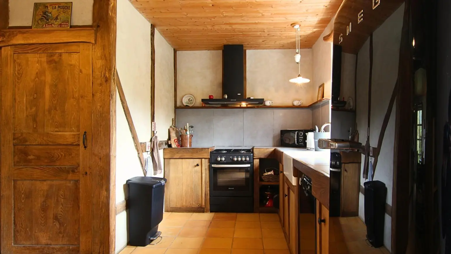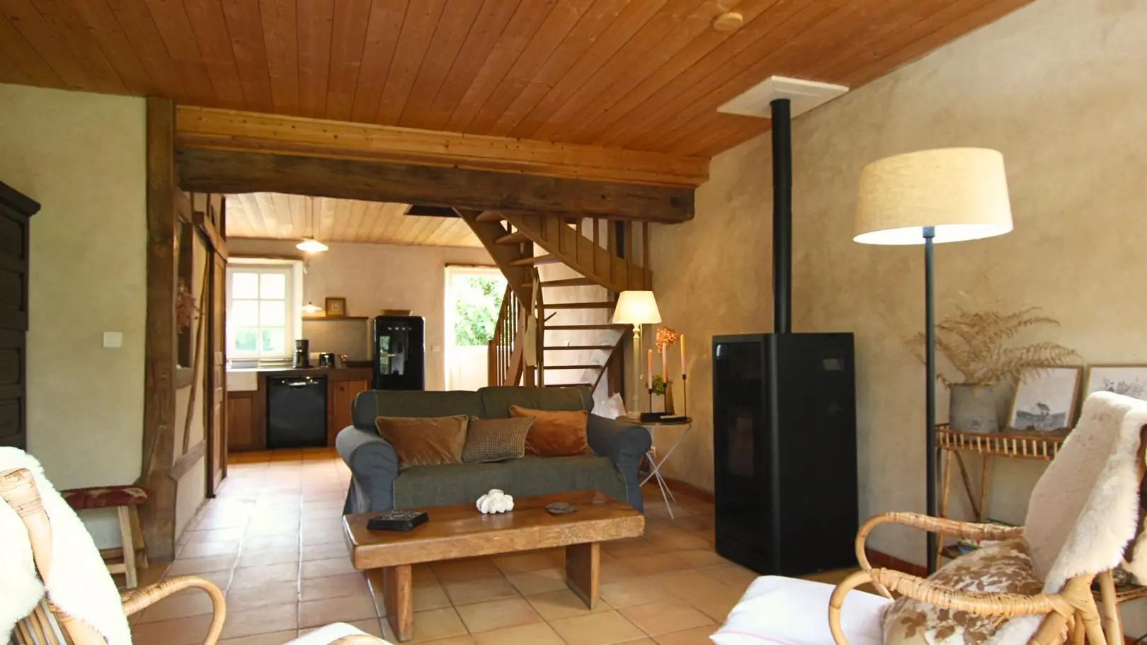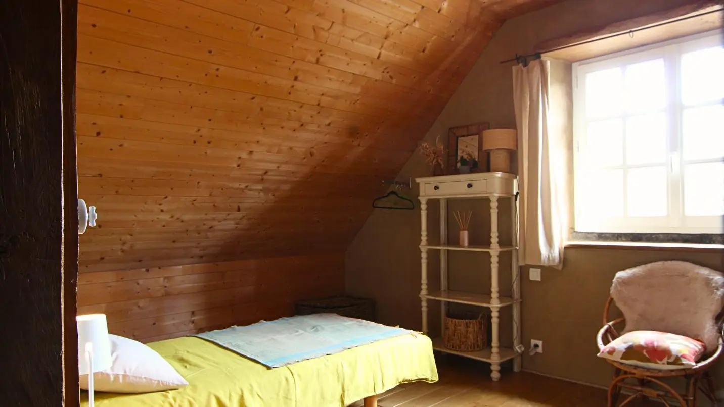 Unabhängiges Haus. Wohnzimmer mit Pelletofen. Kochnische. WC. Im Obergeschoss: Schlafzimmer 1 (1 Bett 160x200), Schlafzimmer 2 (2 Betten 90x190), Badezimmer mit WC. Babybett und -stuhl. HIFI-Kanal. Kein Fernseher. Es gibt keinen Internetzugang. Waschmaschine. Wäschetrockner. Geschirrspüler. Bettwäsche und Handtücher werden gestellt, Betten bei Ankunft gemacht. Reinigungsservice am Ende des Aufenthalts gegen Aufpreis. Heizung durch Pelletofen inbegriffen. Alle Nebenkosten inbegriffen. Privates, nicht eingezäuntes Grundstück. Grill. Gartenmöbel. Abstellraum.
