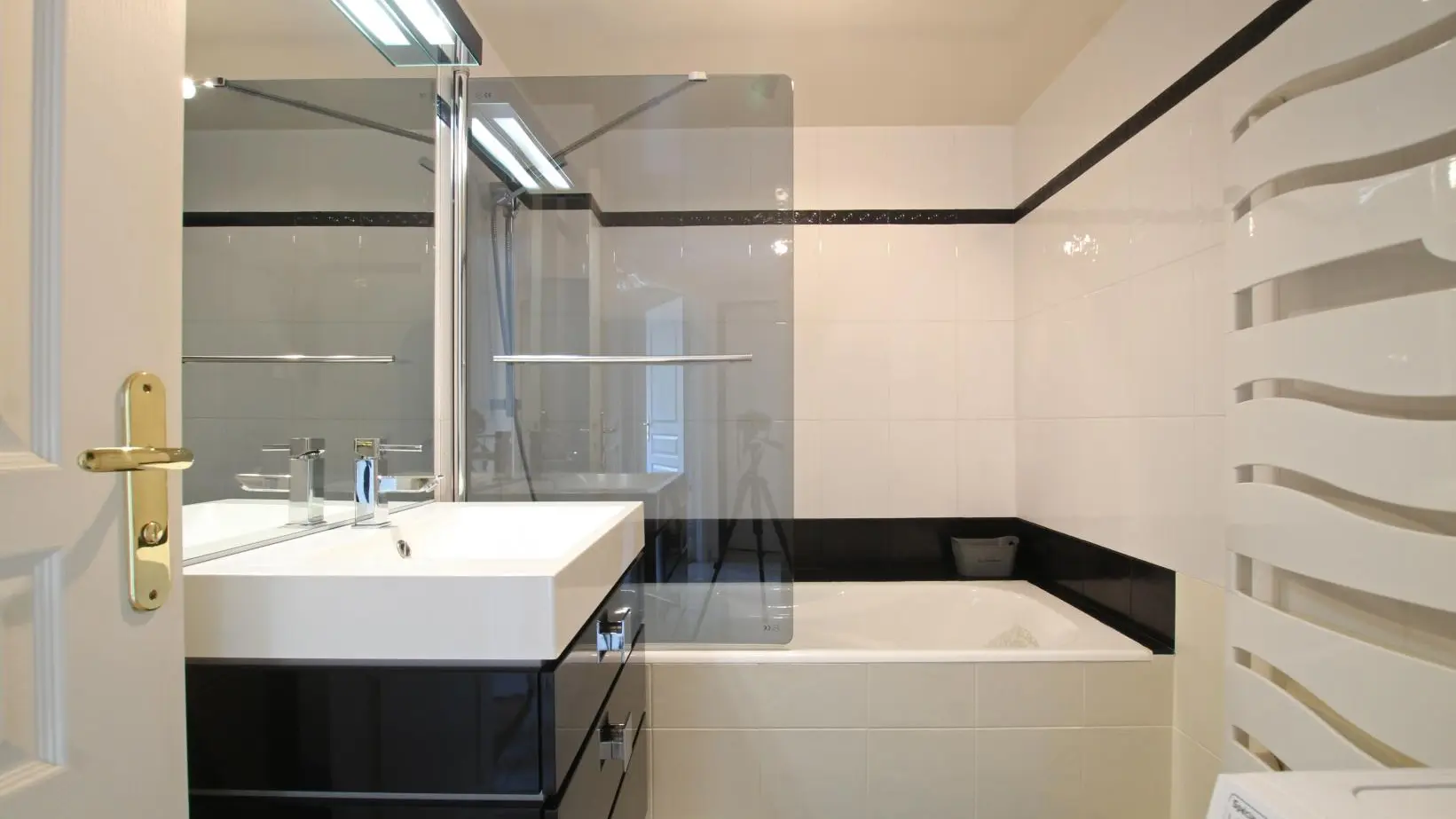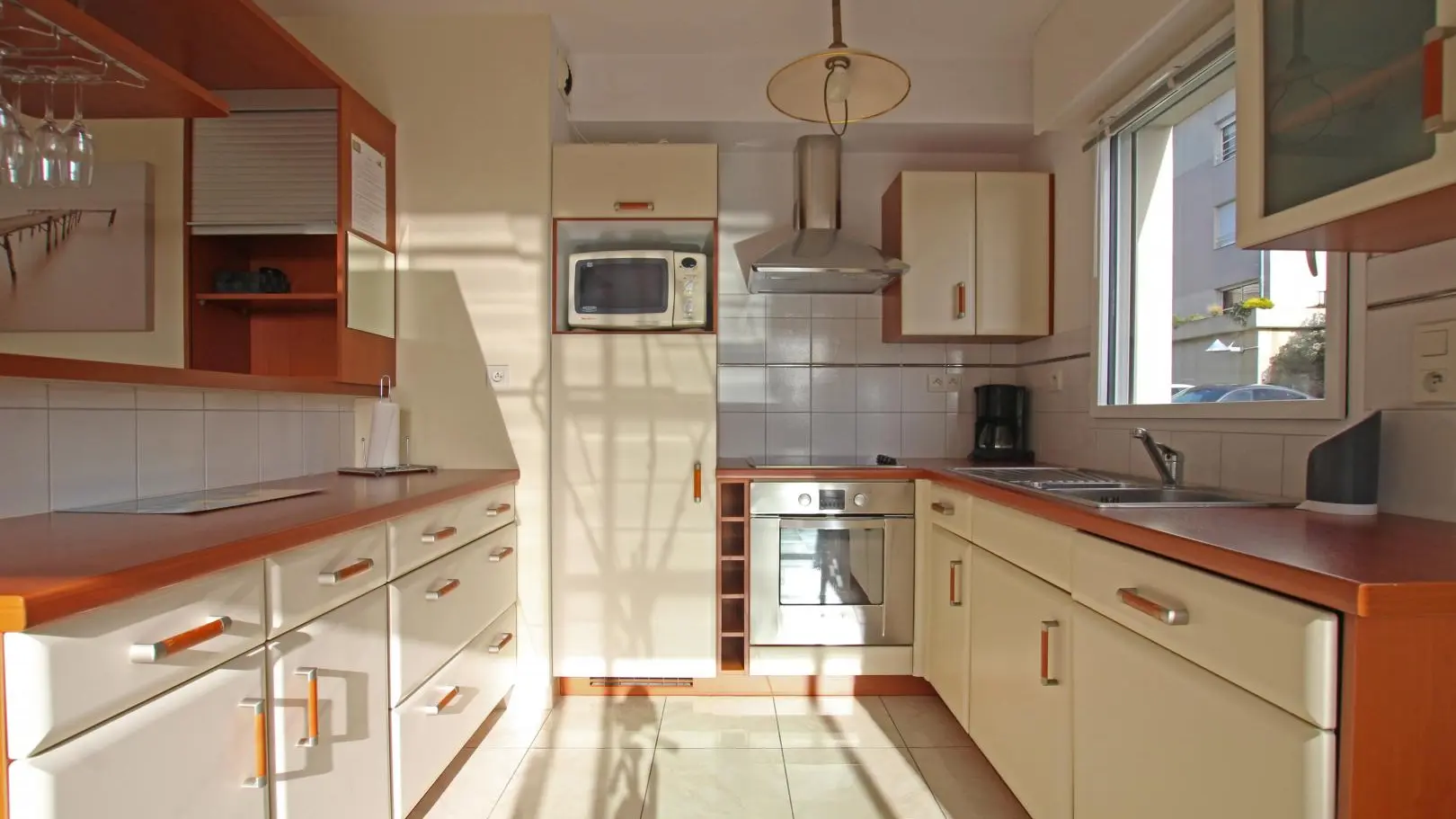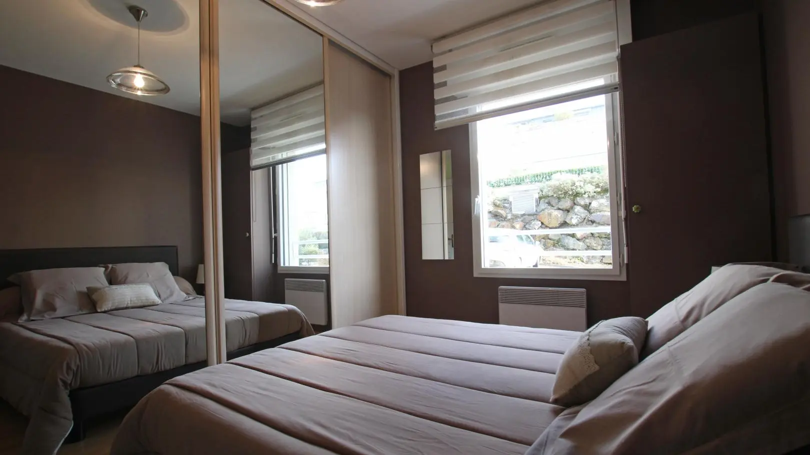 Wohnung im Erdgeschoss eines Gebäudes mit Aufzug. Wohnzimmer (TV) mit ausgestatteter Küche (Backofen, Induktionskochplatten, Geschirrspüler, Kühlschrank, Mikrowelle). Schlafzimmer 1 (Bett 140x200). Schlafzimmer 2 (Bett 140x200). Badezimmer (Waschmaschine). wc. Geschlossene Holzterrasse. Gartenmöbel. Abstellraum im Untergeschoss. Privater Parkplatz. Bettwäsche und Handtücher können gemietet werden. Reinigungsservice gegen Aufpreis. Elektrische Heizung gegen Aufpreis.